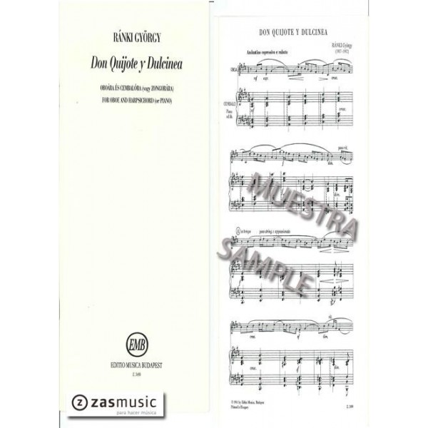Ránki, György (1907-1992): Don Quijote y Dulcinea. For oboe and harpsichord (or piano) Editorial Editio Musica Budapest. ISMN 979-0-080-03490-3