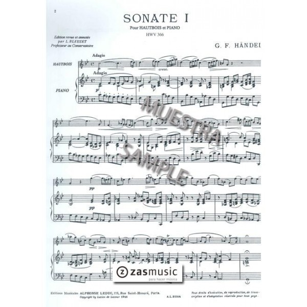 Sonata I HWV 366, Sonata II HWV 364a Editorial Leduc. Dificultad media. Revisión a cargo de Bleuzet. ISMN M-046-21164-5
