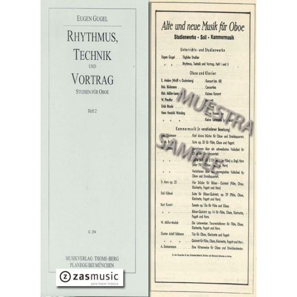 Gugel, Eugen: Rhythmus,Thecnik und Vortrag Studien fúr Oboe Helf 2. Editorial Musikverlag Thomi-Berg.