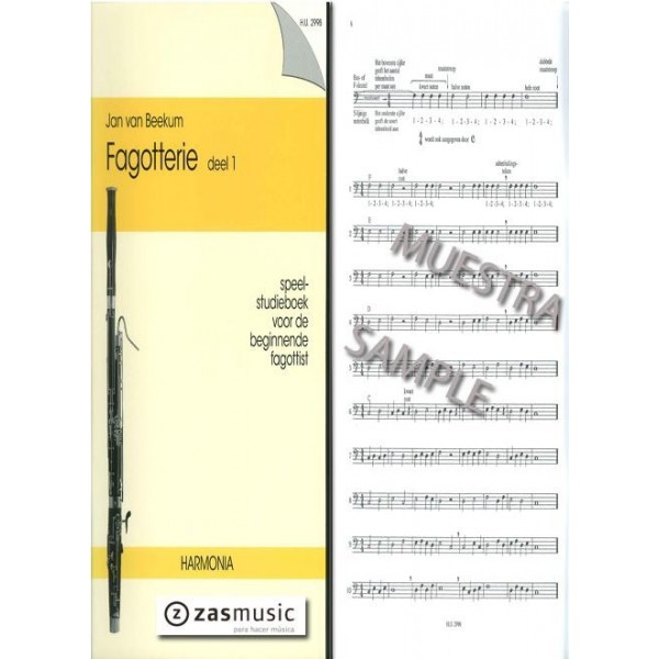 Beekum, Jan van: Fagotterie V. 1 speel-studieboek voor de beginnende fagottist Editorial Harmonia. Método muy adecuado para la iniciación con el fagot