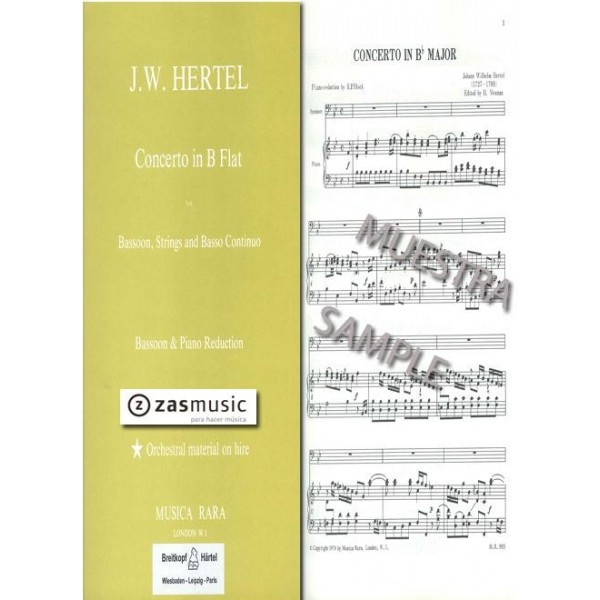 Hertel, Johann Wilhelm (1727-1789): Concerto in B flat for bassoon, strings and basso continuo (piano reduction) Editorial Musica Rara. Edición a cargo de Voxman