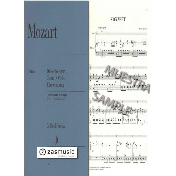Mozart, Wolfgang Amadeus (1756-1791): Oboenkonzert C-dur KV 314. Klavierauszug. Oboe Concerto in C major K. 314 Piano Reduction Ed. G. Henle Verlag. Edición a cargo de Ingo Goritzki. Reducción de piano a cargo de Siegfried Petrenz. Cadencias oboe a cargo de Robert D. Levin. ISM N M-2018-0695-2