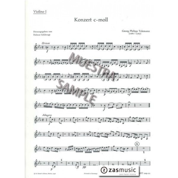Telemann, Georg Philipp (1681-1767): Konzert c-moll. VIOLÍN I Ed. Schott.