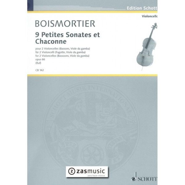 Boismortier, Joseph Bodin de (1691-1755): 9 petites sonates et chaconne for 2 violoncellos (Bassoons, Viole da gamba) op. 66 Editorial Schott. Revisión de Ruf. Dificultad baja