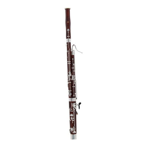 Fagot pensado para estudiantes. Fácil de tocar, con una entonación estable y que apoya al músico. Tiene un cuerpo mas largo de lo habitual, lo que favorece un sonido oscuro y cálido. Está quipado con el Mi sobreagudo, opcional. Viene con su funda original y otros accesorios. Consultar especificaciones.