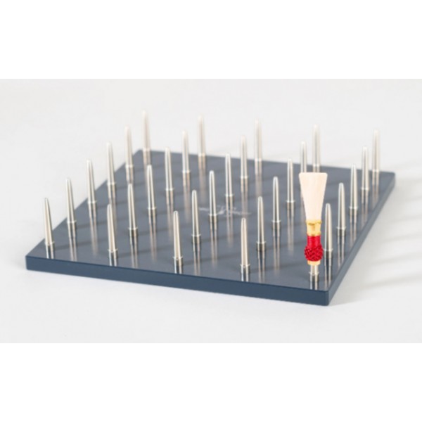 Tabla de secado para 30 cañas de fagot, fijada sobre una base de aluminio arenado y revestido. Mandriles de alpaca.
